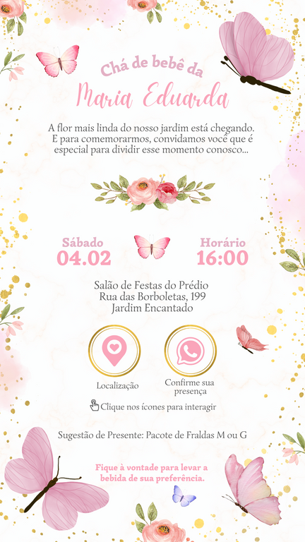 Devido a diferença entre os modelos de celulares presentes no mercado, bem como de sistemas operacionais (IOS, Android...), ou falta de conexão de internet, não nos responsabilizamos por falhas pontuais na visualização do convite e/ou abertura dos links interativos.